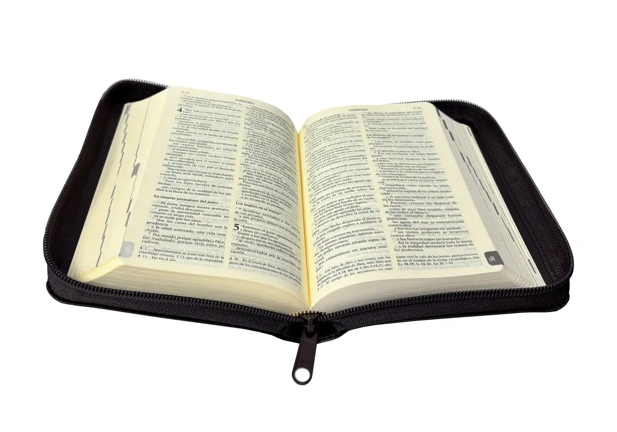 Biblia de Jerusalén modelo bolsillo con cremallera nueva edición.  Esta edición se beneficia de los estudios e investigaciones de la Escuela Bíblica y Arqueológica de Jerusalén.Con funda protectora de símil piel con cierre de cremallera e incluye unos prácticos uñeros impresos para facilitar la búsqueda de los distintos libros bíblicos.