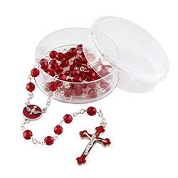 This Rosary features ruby crystal beads, crucifix, enamel plated holy spirit Medal center piece on a sturdy construction. These unique pieces are sure to make great spiritual gifts for those with a special devotion and confirmation. Rosary comes in a beautiful gift box.
