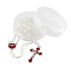 This Rosary features crystal aurora borealis beads, crucifix, enamel plated holy spirit Medal center piece on a sturdy construction. These unique pieces are sure to make great spiritual gifts for those with a special devotion and confirmation. Rosary comes in a beautiful gift box.