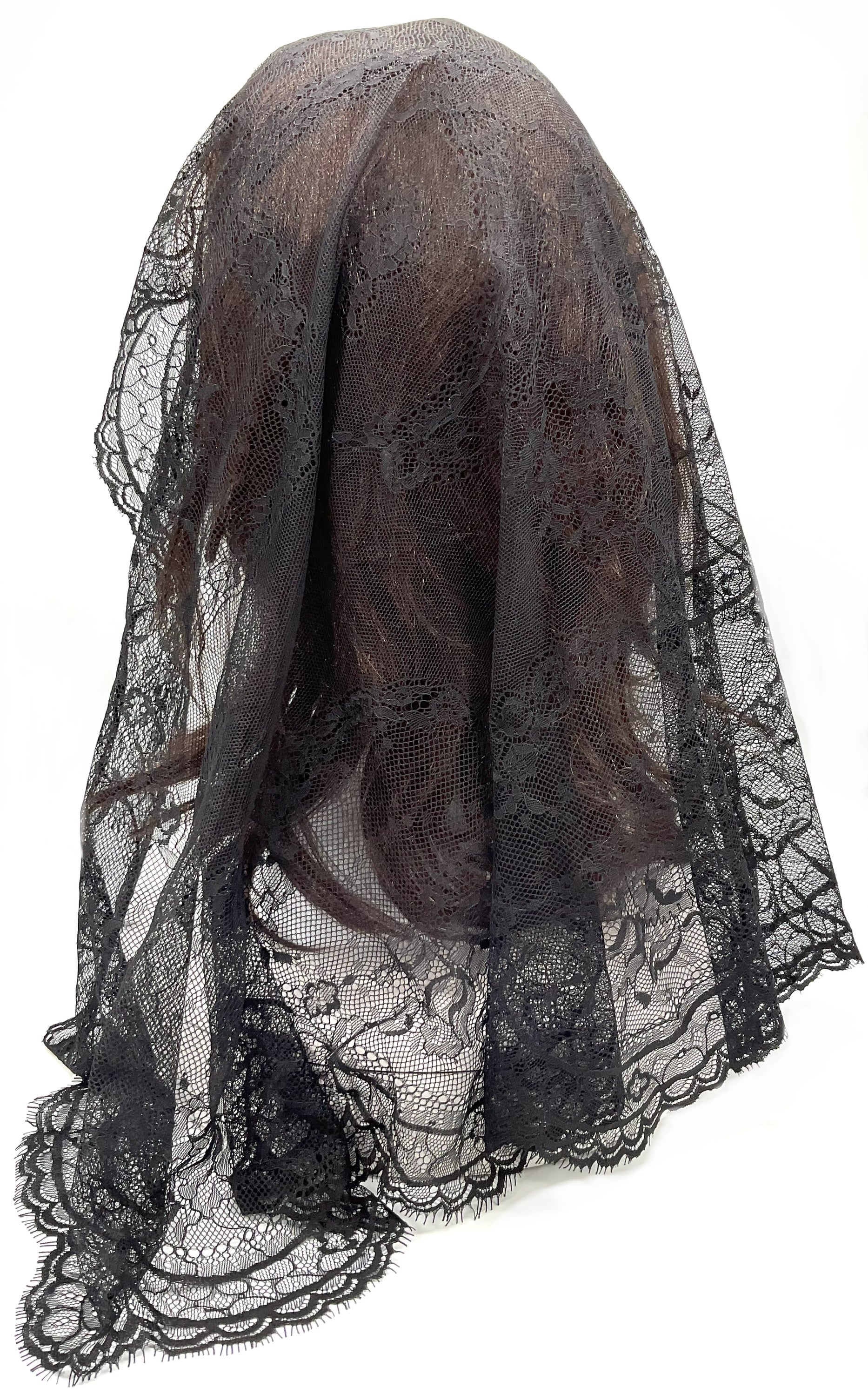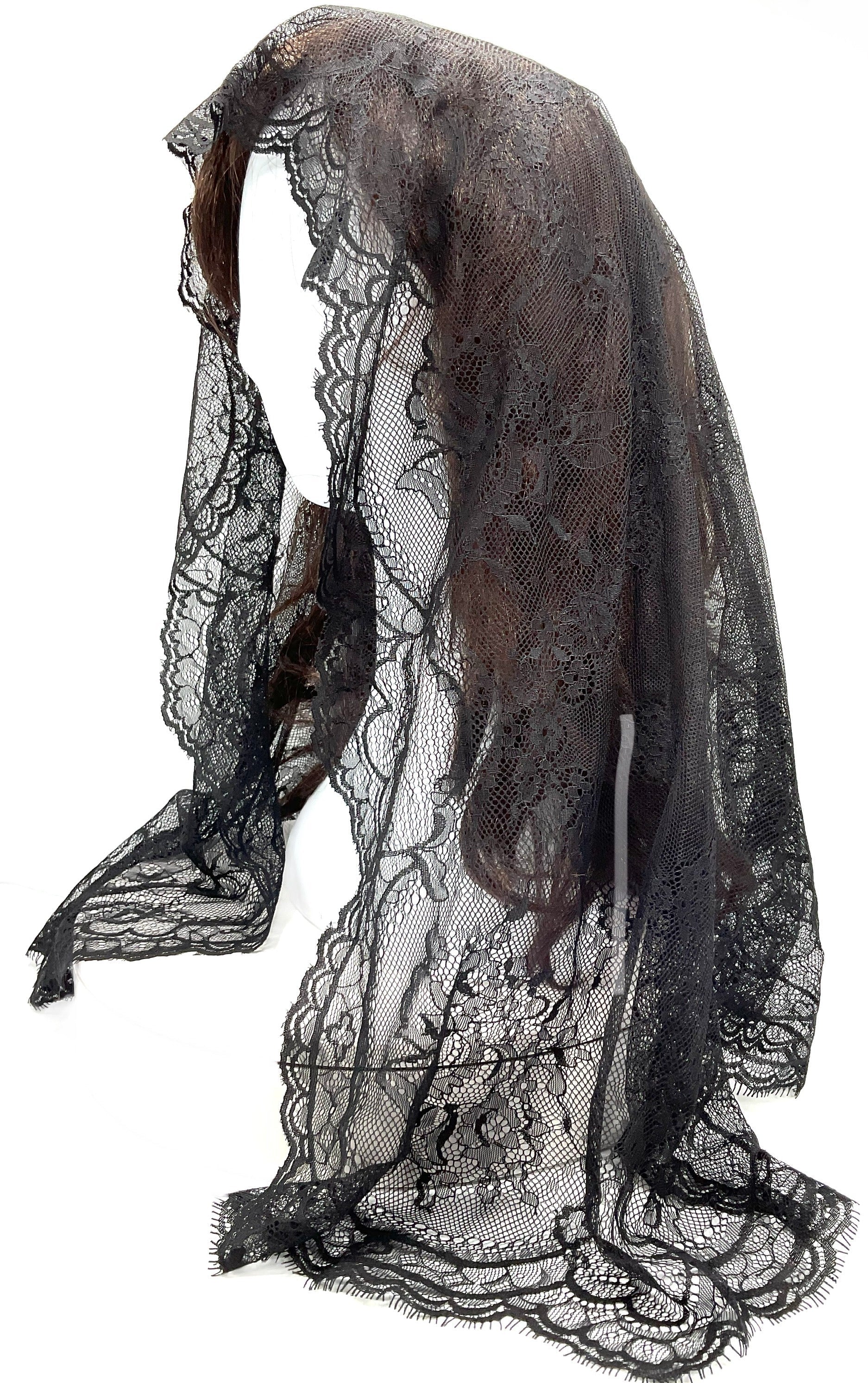 Wearing a veil has been a common practice among faithful since the early days of Christianity, . These Veils are made in Spain and are also commonly called mantillas, which comes from the word manta, that means cape, the can come in circular or triangular shaped pieces of lace that are draped over a woman’s head. The Catholic women wear when attending Mass, or in the presence of the Blessed Sacrament.